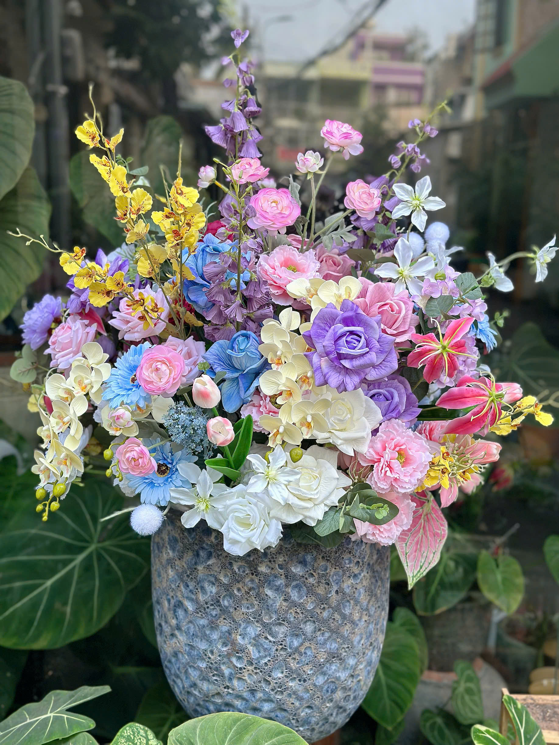 Bình hoa lụa pastel: Vườn Xuân Rực Rỡ