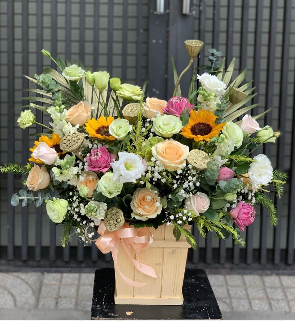 Sản phẩm Hoa tươi thành phẩm có thể gần giống với mẫu 90% - tùy thuộc vào cảm nhận của khách hàng vì là sản phẩm thủ công".